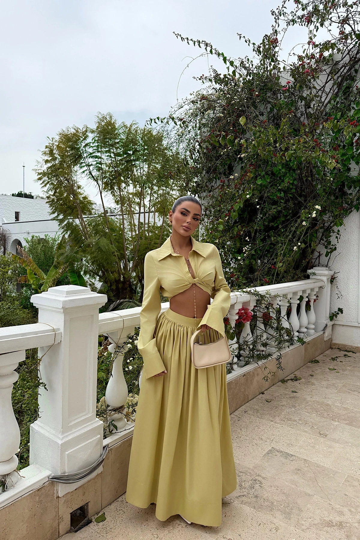 Yellow Skirt Suit XS size is used in the image. Made of Poplin Fabric. Top Length: 43 cm Chest: 47 cm Bottom Length: 92 cm Waist: 35 cm Model Measurements Height 158 ​​Weight 52 Chest 80 Waist 62 Hip 93