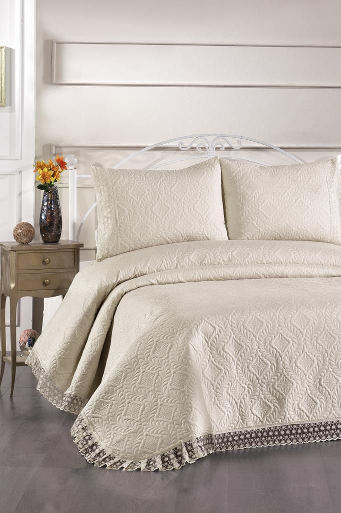 Zoya Dantelli Kapitoneli Ultrasonik Çift Kişilik Yatak Örtüsü Bej
